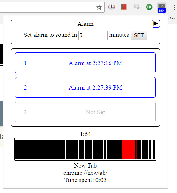 This is a google extension I created in order to help with my time management.I keep track of my internet usage in the last 30 minutes, and if too much time is spend on webpages that I find distracting such as reddit and youtube, I block them.